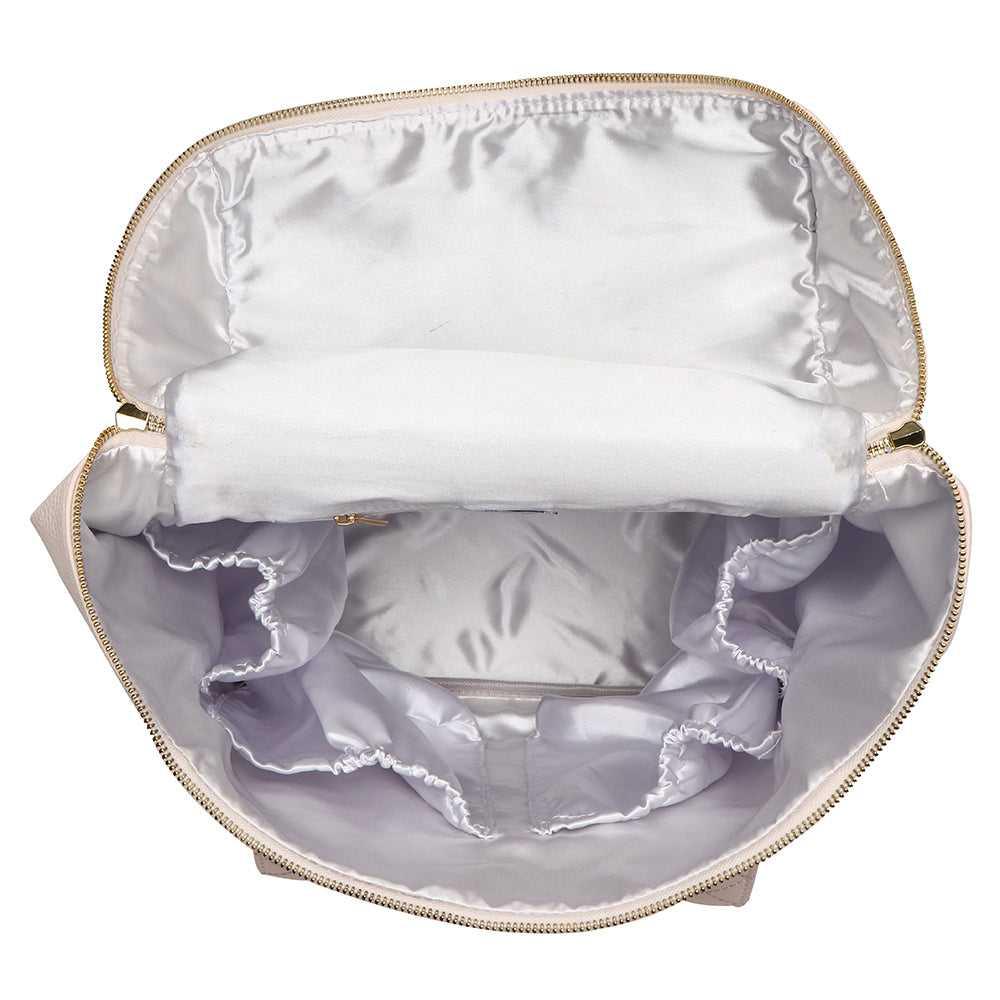 The Pastel Pink Petit Monaco Diaper Bag by Luli Bebe is a stylish mini diaper bag backpack best for moms who want elegance in a compact size. Crafted from premium vegan leather and lined with our signature satin interior, this pastel pink diaper bag keeps essentials organized without sacrificing style.